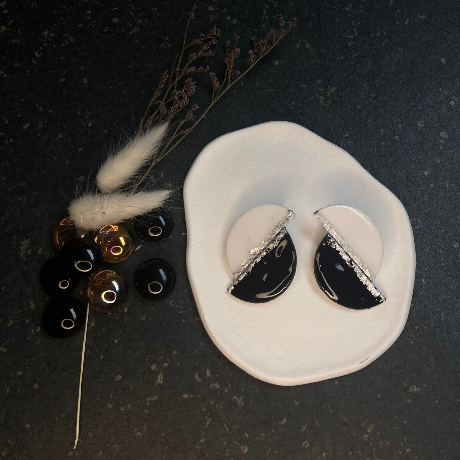 Deze stijlvolle assymetrische oorbellen in zwart en wit, met een verfijnde gouden lijn ertussen, combineren contrast en elegantie op een unieke manier. Het gouden accent voegt een vleugje luxe toe, waardoor ze perfect zijn voor elke gelegenheid!