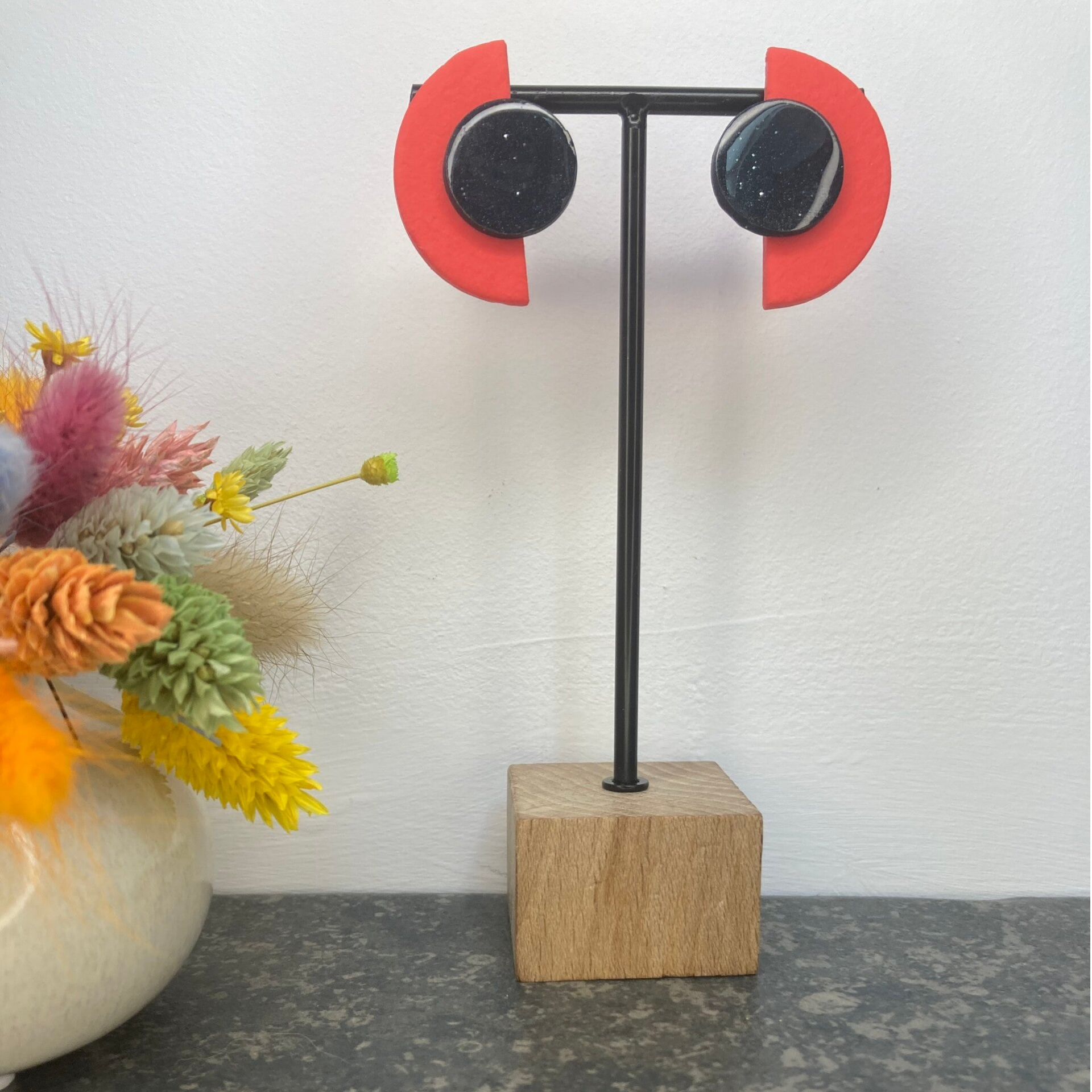 Deze oorbellen in een prachtige combinatie van roze en zwart voegen een speelse, maar stijlvolle twist toe aan je look. Het contrast tussen de zachte roze tinten en het gedurfde zwart maakt ze het ideale accessoire voor wie van unieke en opvallende details houdt!