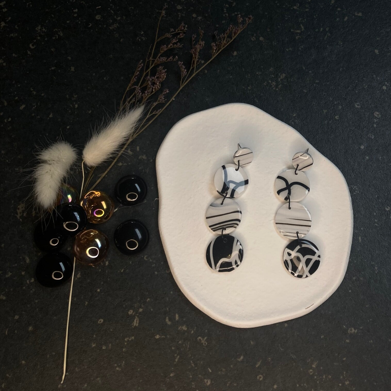 Deze oorbellen, bestaande uit drie cirkels in een combinatie van zwart en wit, brengen een strakke en moderne uitstraling met zich mee. Het contrast tussen de klassieke zwart-witte kleuren zorgt voor een tijdloos en toch gedurfd ontwerp. De drie cirkels creëren een dynamisch en speels effect, terwijl de minimalistische kleurencombinatie ze veelzijdig maakt voor elke outfit. Of je nu een casual look hebt of iets formelers draagt, deze oorbellen geven je stijl altijd een verfijnde en eigentijdse twist. Perfect voor wie houdt van eenvoud met een statement!