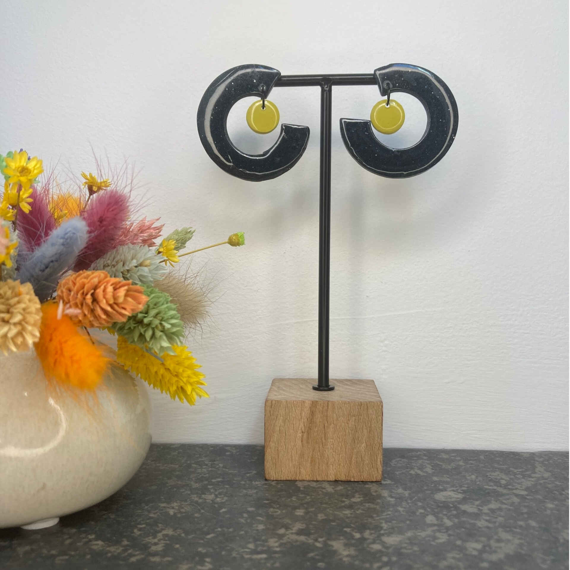 Deze cirkelvormige stardust oorbellen zijn een verfijnde keuze met een subtiel olijfgroen accent in het midden. Het zachte stardust effect zorgt voor een delicate sprankeling, terwijl het olijfgroene cirkeltje een mooie, aardse pop van kleur toevoegt. Het moderne, minimalistische ontwerp maakt deze oorbellen perfect voor zowel dagelijks gebruik als speciale gelegenheden, en de combinatie van de zachte glans en het groene detail creëert een elegante en tijdloze uitstraling. Voeg wat verfijning en kleur toe aan je look met deze handgemaakte stardust oorbellen!
