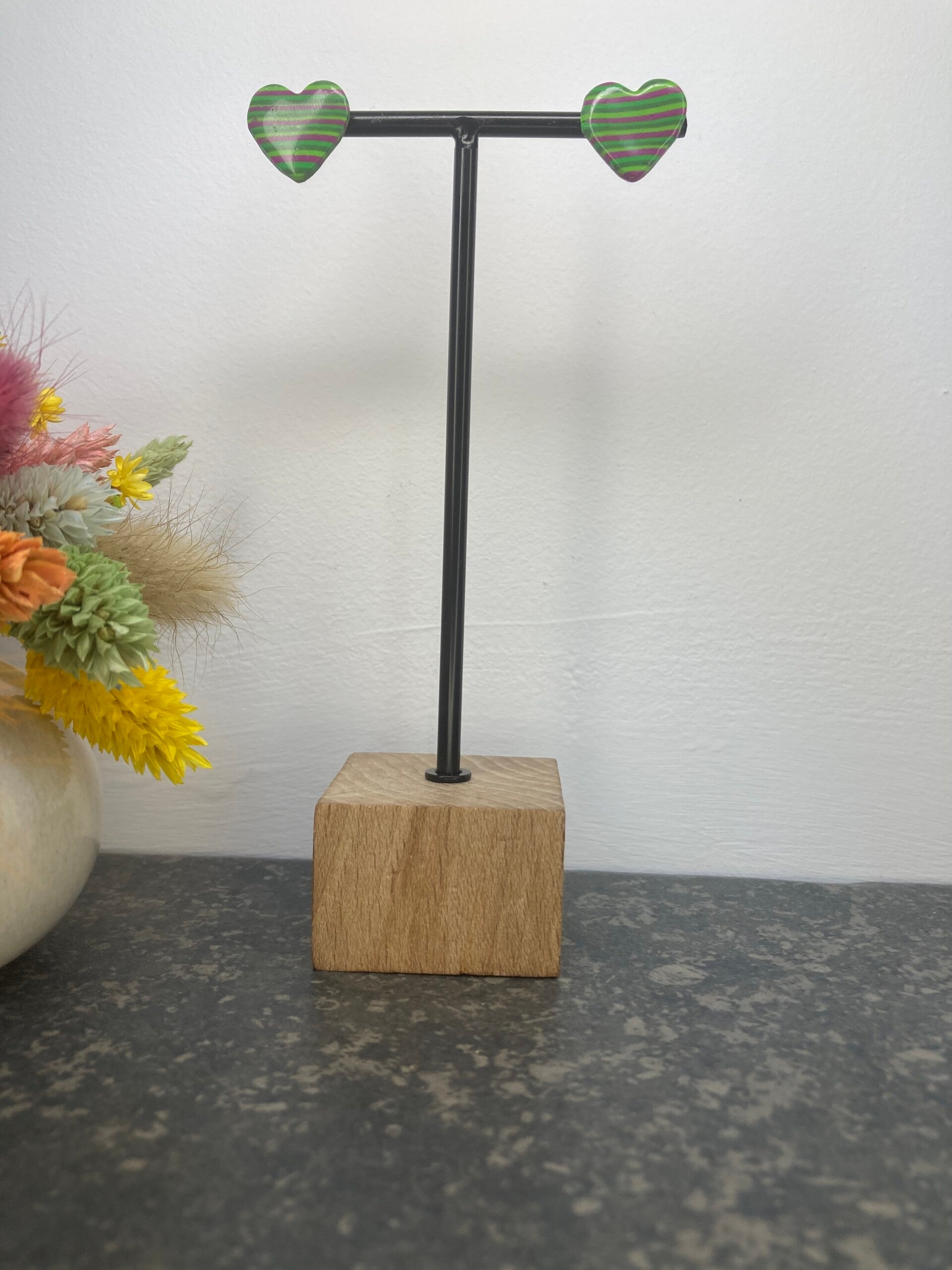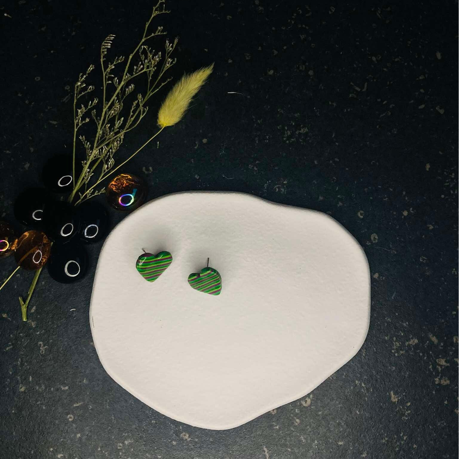 Deze hartvormige oorbellen in zachte tinten groen en roze stralen een romantische en frisse uitstraling uit. De combinatie van de zachte kleuren geeft een speelse, maar verfijnde touch, perfect voor een vleugje kleur in je dagelijkse look of een speciale gelegenheid.