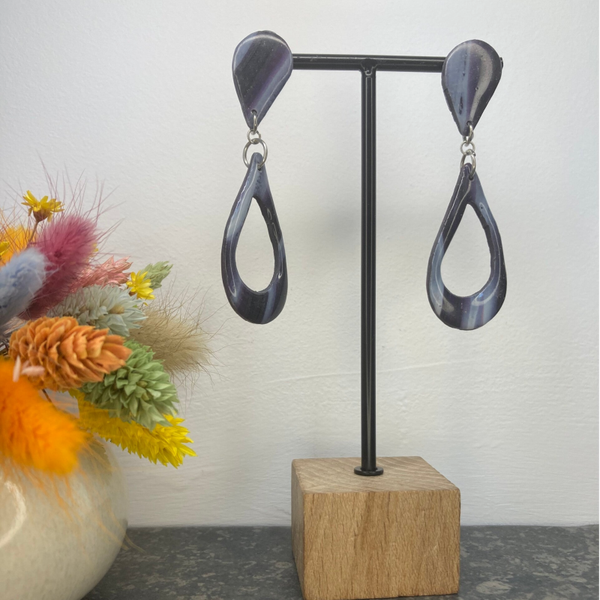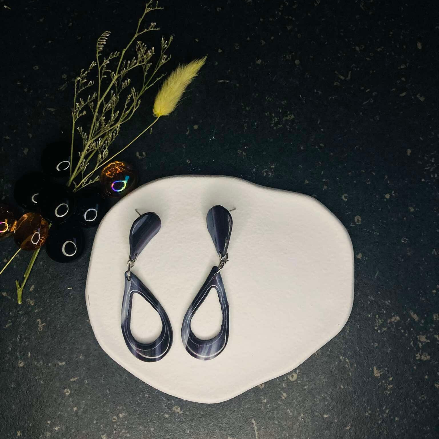 Deze druppelvormige oorbellen in twee tinten grijs bieden een elegante en verfijnde uitstraling. Het subtiele kleurcontrast tussen de verschillende grijstinten zorgt voor een tijdloze, moderne look die gemakkelijk te combineren is met elke outfit.