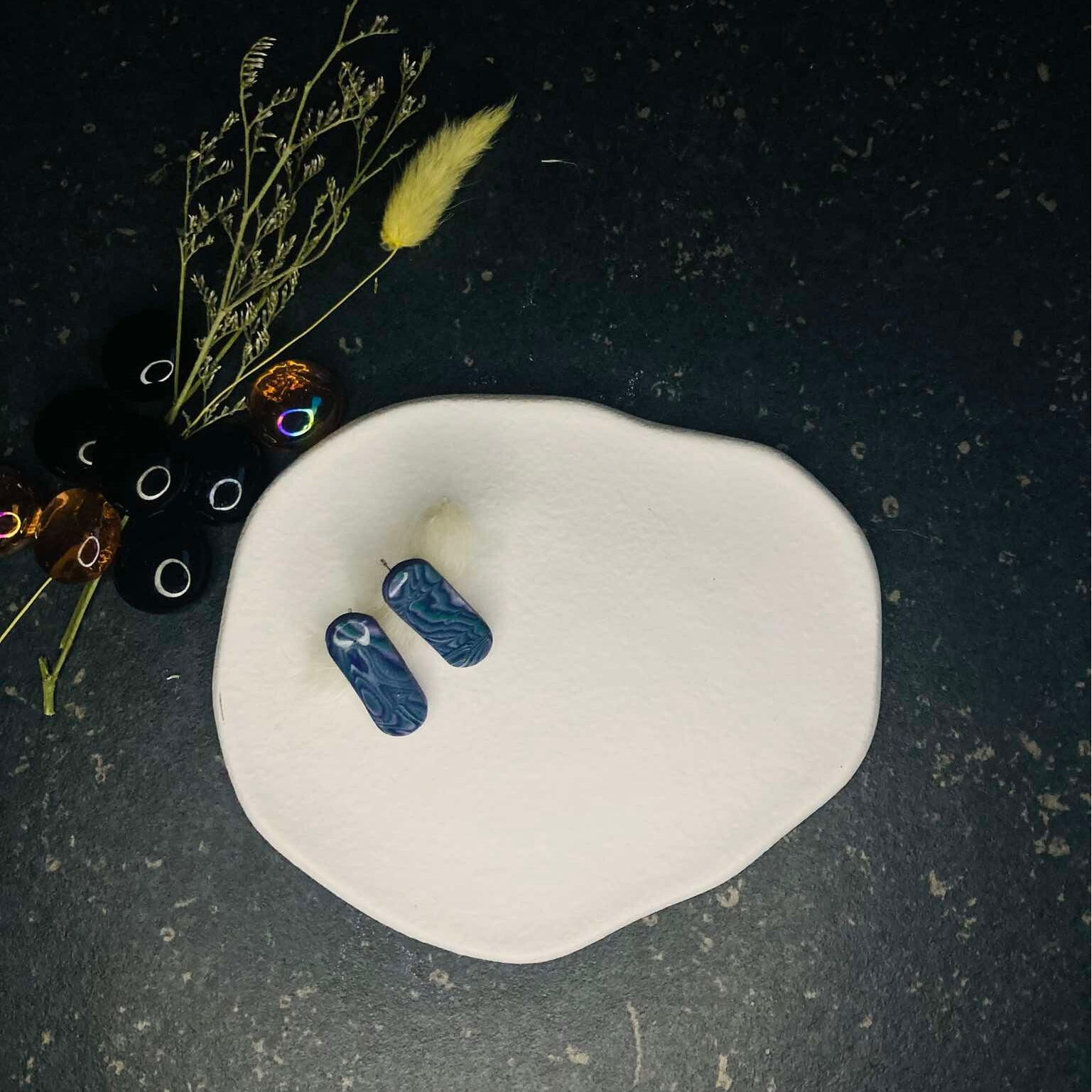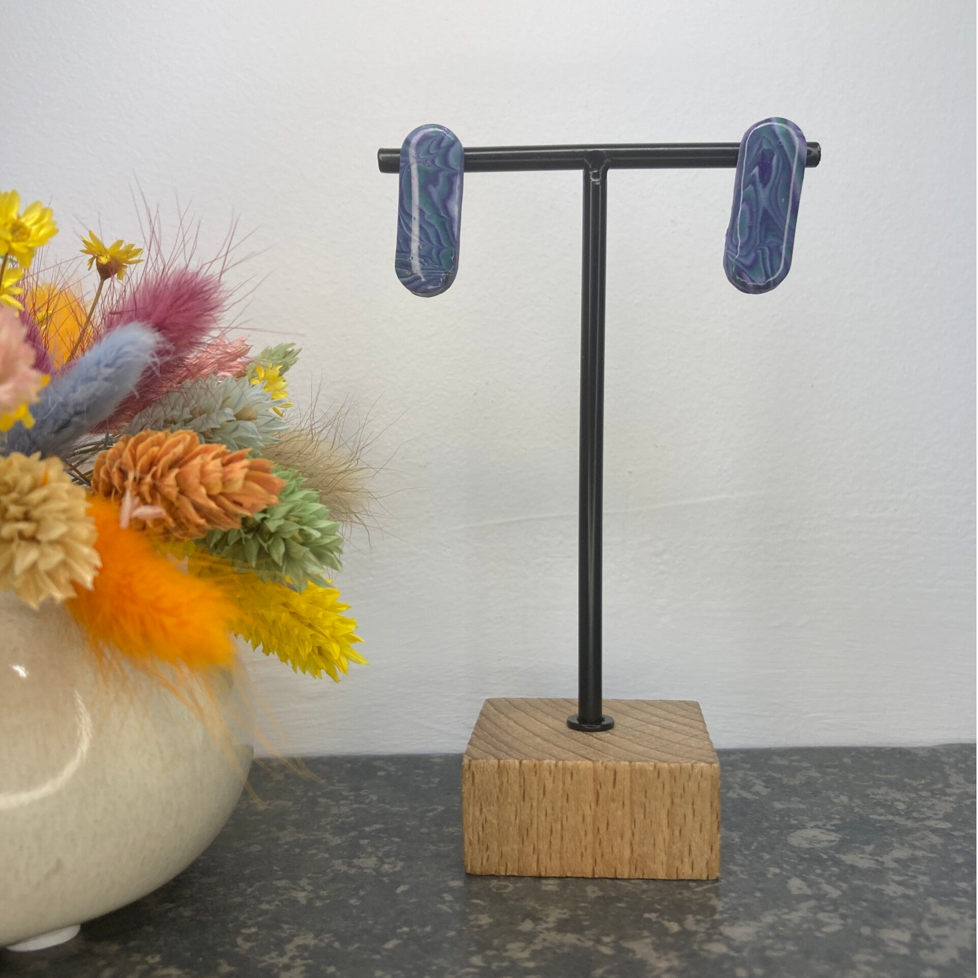 Deze oorbellen in verschillende tinten paars creëren een elegante en dynamische uitstraling. De zachte overgangen tussen de paarse tinten voegen diepte en beweging toe, waardoor ze een verfijnde en opvallende aanvulling zijn op je look. Perfect voor wie houdt van kleur met een subtiele, maar krachtige impact.